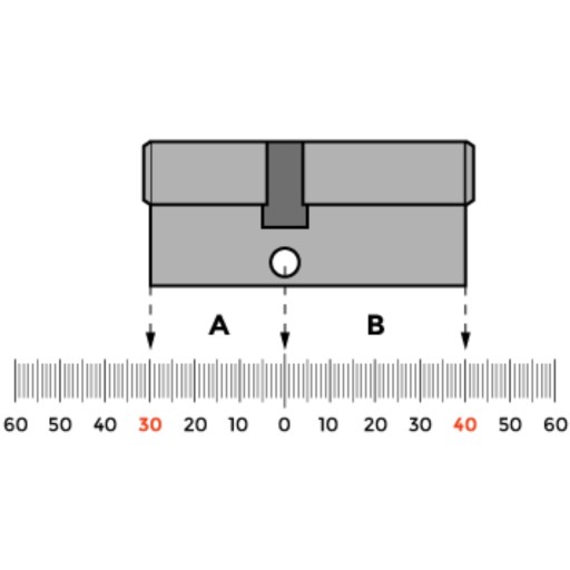 W efekcie pomiarów otrzymujemy wymiar wkładki A/B, np. 30/40 (jak na ilustracji), jednostką pomiaru są milimetry.