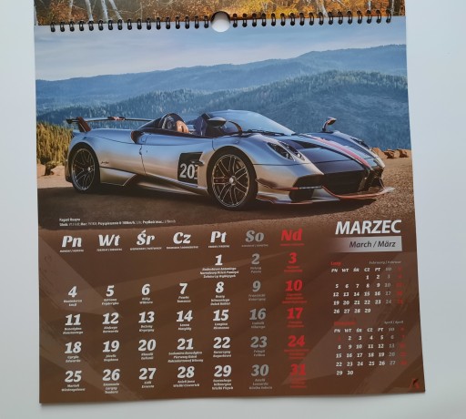 7 plansz - miesiąc na stronie, zaznaczone ważne święta oraz imieniny.