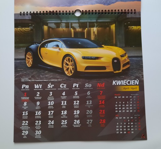 Kalendarz na 2024 rok ścienny na spirali z zawieszką.