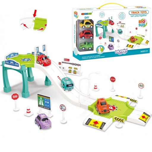 Tor samochodowy od marki WOOPIE zachwyci każde dziecko. Maluch może jeździć 3 samochodami po stromej drodze i zaparkować auto na płaskim terenie lub zatankować na stacji benzynowej . Dodatkowo w zestawie znajduje się wiele znaków drogowych , które umilą zabawę. Akcesoria i wygląd toru są naprawdę realistyczne . Dziecko poznaje podstawy ruchu drogowego, co pobudza jego świadomość przyszłości. Zabawka uczy poprzez zabawę! Godziny zabawy na torze gwarantowane!