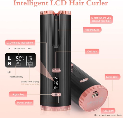- Gwarancja jakości: zestaw zawiera automatyczną lokówkę, dwie szpilki do włosów, worek do kurzu, grzebień, kabel do ładowania i instrukcję obsługi (może nie być dostępna w języku polskim).
