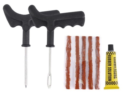 Zestaw naprawczy do kołkowania opon bezdętkowych. Pozwoli na szybkie i tanie dokonanie doraźnej naprawy przebitej opony. Od razu po zakończeniu naprawy i uzupełnieniu ubytku powietrza w oponie można ruszać w dalszą drogę. Idealny do kołkowania opon samochodowych i motocyklowych.