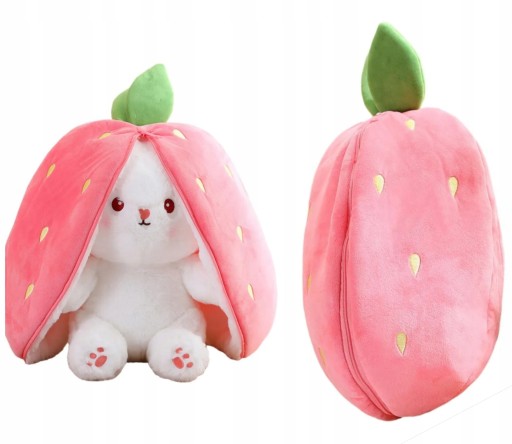 Pluszowa maskotka KRÓLICZEK TRUSKAWKA - zabawka 2w1, może służyć jako poduszka, ponieważ króliczek jest ukryty w zamykanych uszach ;)