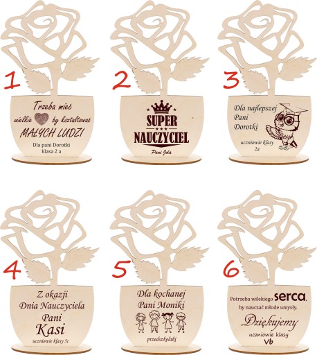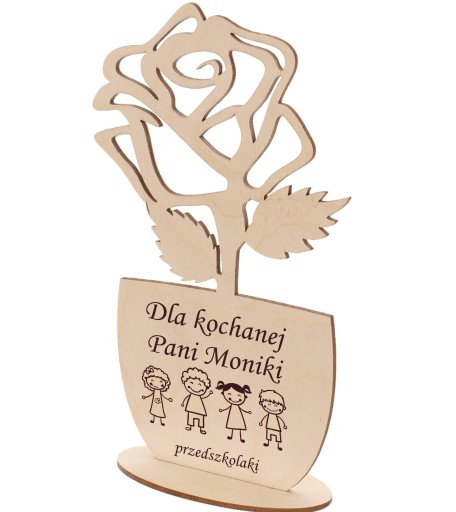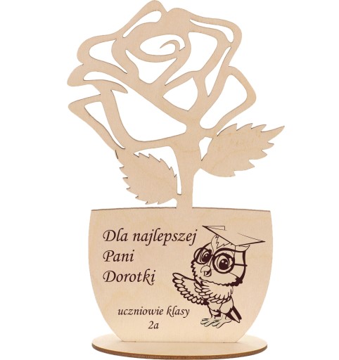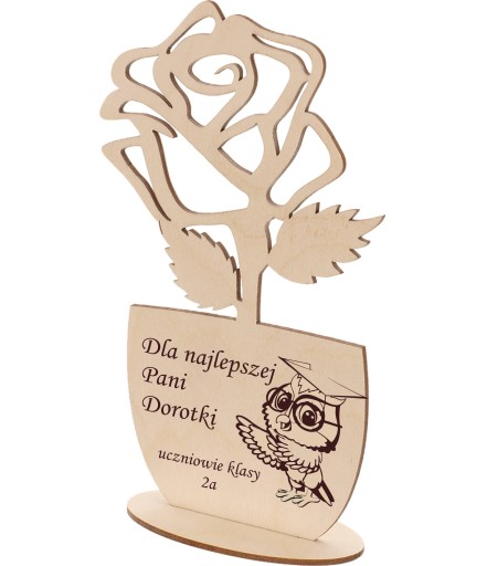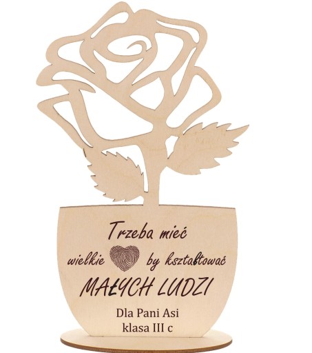 ДЕРЕВЯННЫЙ ЦВЕТОК РОЗЫ - ГРАВИРОВКА ДНЯ УЧИТЕЛЯ