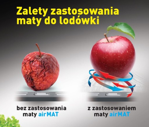 airMat mata do lodówki to funkcjonalny gadżet, którego nie powinno zabraknąć w żadnej kuchni. Wykonana ze specjalnego materiału mata zapewnia swobodną cyrkulację powietrza, dzięki czemu przechowywane na niej produkty zachowują swą świeżość i walory smakowe przez długi czas.