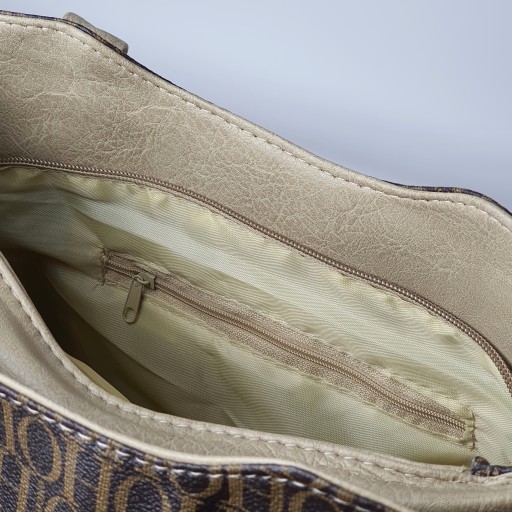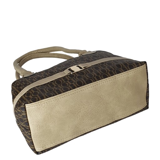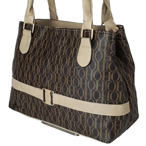 Wykonana z wysokiej jakości skóry ekologicznej w całości zdobionej wzorem typu monogram. Torebka lekko usztywniona.