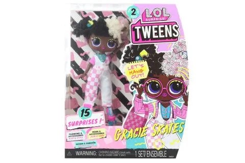 Poznaj lalkę LOL Surprise! Tweens - Gracie Skates z pięknymi rysami i stylizowanymi włosami. Jej życie toczy się na deskorolce, znajdziesz ją też na wrotkach lub w skateparku.