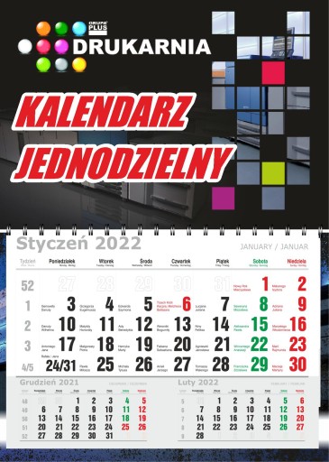 > kalendarz 2 częściowy, spiralowany, pełny kolor(CMYK)