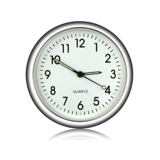 Zegar Kwarcowy Naklejany na Deskę Rozdzielczą Auta Biały + Uchwyt na Kratkę