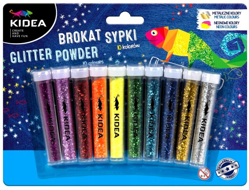 Brokat sypki Kidea 10 kolorów neonowych, metalicznych