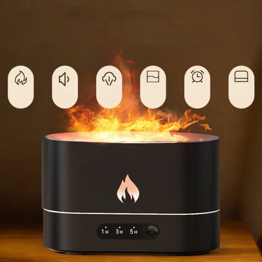 Nawilżacz powietrza, dyfuzor zapachów i efekt ognia, które sprawiają, że nawilżacz powietrza jest wyjątkowy. Połączenie lampki nocnej z płomieniem i mgłą tworzy realistyczny efekt płomienia, zapewnia przyjemne uczucie kominka. Dodaj kilka kropli ulubionego olejku aromatycznego, aby złagodzić zmęczenie i zrelaksować, jednocześnie poprawiając jakość powietrza i zachowując przed suchością.