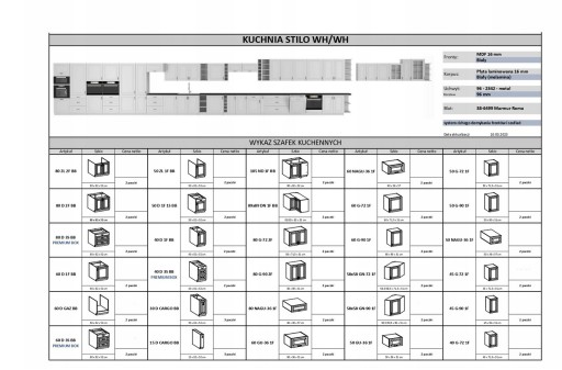 WYKAZ WSZYSTKICH SZAFEK SYSTEMU KUCHNI STILO