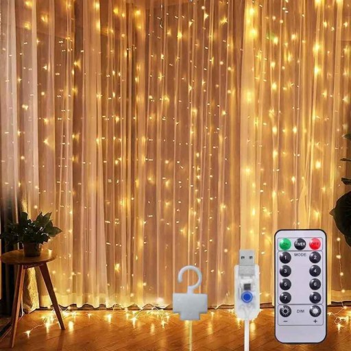 LAMPKI 300 LED GIRLANDA KURTYNA ŚWIETLNA OKIENNA 3x3 m