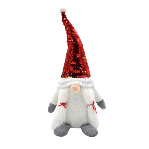 OZDOBA ŚWIĄTECZNA STOJĄCY SKRZAT GNOM DEKORACYJNY Z CEKINAM 35CM