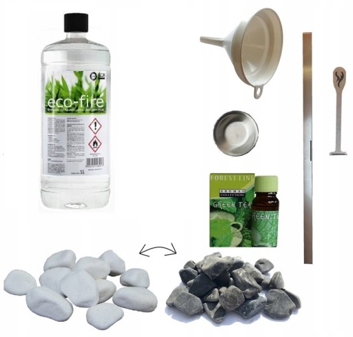 - 1 kg KAMIENI GRATIS. Do wyboru kolor biały lub czarny pokazany na zdjęciach z biokominkiem. Przy braku wskazania koloru wybieramy kolor losowo.