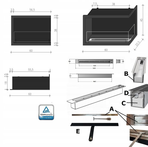 Biokominek do wbudowania we wnękę murowaną lub z zabudowy gk- ognioodpornej. (BEZ KOMINA).