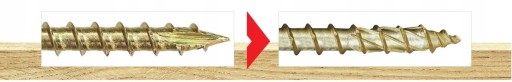 - Specjalne karby tnące na gwincie przecinają włókna struktury drewna podczas wkręcania.