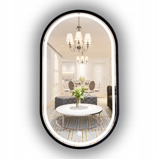 ЧЕРНОЕ ЗЕРКАЛО ОВАЛЬНОЕ С ПОДСВЕТКОЙ 50х115 СМ С ВЫКЛЮЧАТЕЛЕМ