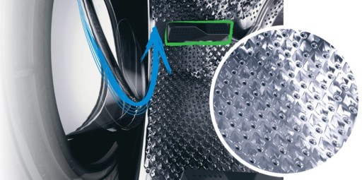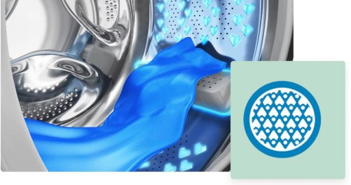 Częste pranie i suszenie może negatywnie wpływać na niektóre ubrania. System AquaWave® składa się z zakrzywionych szklanych drzwi i specjalnych łopatek, które wykorzystują ruch falowy do obracania ubrań w bębnie, zapewniając efektywniejsze i bardziej wydajne pranie.