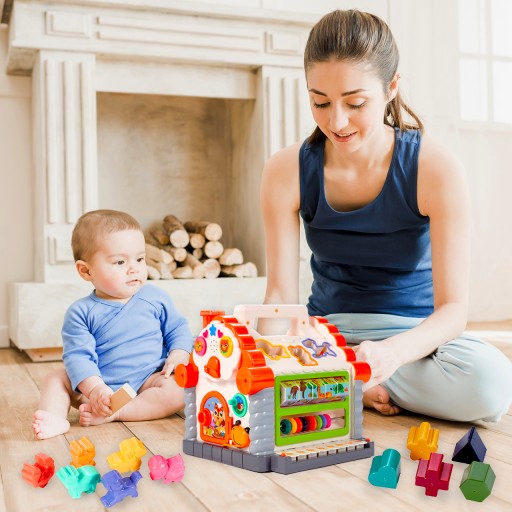 MULTIDOMEK DOMEK INTERAKTYWNY SORTER KLOCKI ZWIERZĄTKA PIANINKODLA DZIECI