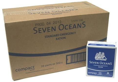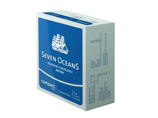 W skład zestawu wchodzą 24 sztuki wysokoenergetycznej racji energetycznej Seven Oceans, która dostarcza 2450 kcal i podzielona jest na 9 porcji w formie tabliczek.