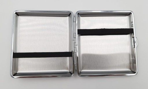 Uwaga !!!. Sprzedaje jako uszkodzoną gdyż jedna z gumek jest lekko naderwana. Papierośnica jest nowa. Oferta dotyczy papierośnicy widocznej na zdjęciach. Papierośnica mieści 20 papierosów. Posiada gumki dzięki którym papierosy są unieruchomione i nie latają w czasie przenoszenia papierośnicy. Idealnie nada się na prezent. Wymiary papierośnicy to 9,5x10x2,3cm.