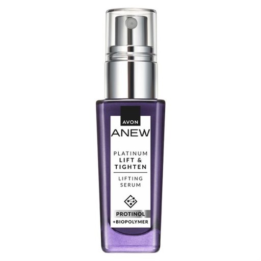 Zapraszamy po nowość prosto z laboratoriów Avon Anew! Liftingująco-napinające serum do twarzy Anew Platinum znakomicie ujędrnia i poprawia napięcie dojrzałej cery. Jego bogata formuła z Protinolem™ i biopolimerami zafunduje skórze 55+ efekt liftingu i przywróci jej wyrazisty kontur. Aż 8/10 kobiet testujących nasze serum potwierdza uczucie aktywnego ujędrnienia i napięcia skóry**. Skuteczność kosmetyku poczujesz już po pierwszym użyciu, a efekty pogłębisz stosując serum regularnie.