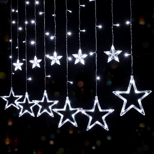 ★ Romantyczne kurtyny w kształcie gwiazdy : ciepłe białe kurtyny LED w kształcie gwiazdy, dodają uroczy świąteczny akcent do Twoich wakacji i spotkań.