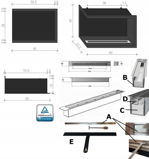 Biokominek do wbudowania we wnękę murowaną lub z zabudowy gk- ognioodpornej. (BEZ KOMINA).