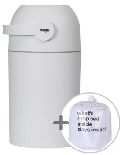 Kosz na pieluchy MAGIC można używać z wykorzystaniem standardowych, plastikowych worków na śmieci. Dzięki opatentowanemu urządzeniu (WO 2014/035249) i innowacyjnemu systemowi uszczelnień zapobiega wydostawaniu się nieprzyjemnego zapachu. Praktyczny i łatwy w użyciu: trzy proste ruchy i tylko jedna ręka. Kiedy worek jest pełny, można go łatwo wyjąć i wyrzucić co ogranicza rozprzestrzenianie się nieprzyjemnych zapachów. Kompaktowy i o niewielkich rozmiarach, mieści aż do 25 pieluszek*. Łatwy w czyszczeniu. Zastosowanie jednego worka znacznie zmniejsza odpady z tworzyw sztucznych i upraszcza proces recyklingu.
