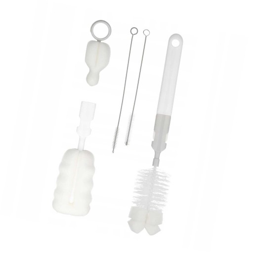Praktyczny zestaw szczotek ułatwi codzienne mycie butelek i smoczków. Mała szczoteczka z gąbki przeznaczona jest do delikatnego czyszczenia smoczków z zabrudzeń po mleku lub kaszce.
