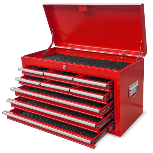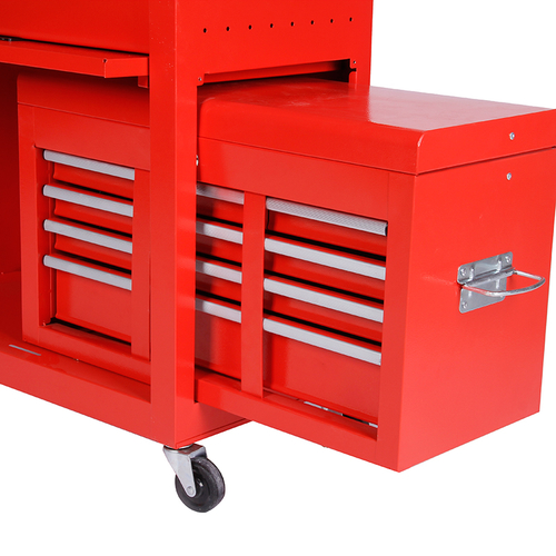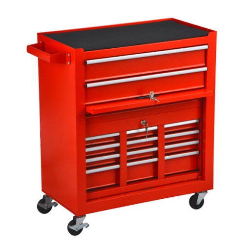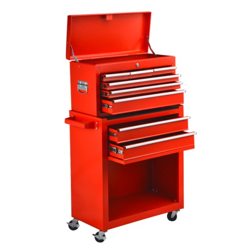 2 Częściowy wózek narzędziowy, szafka warsztatowa 8 szuflad oraz 2 przegrody, kolor czerwony. Wysokiej jakości wózek narzędziowy, idealny do warsztatów samochodowych, garaży. Wszystkie szuflady otwierają się bardzo lekko. W każdej szufladzie znajduje się mata antypoślizgowa.