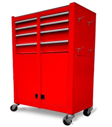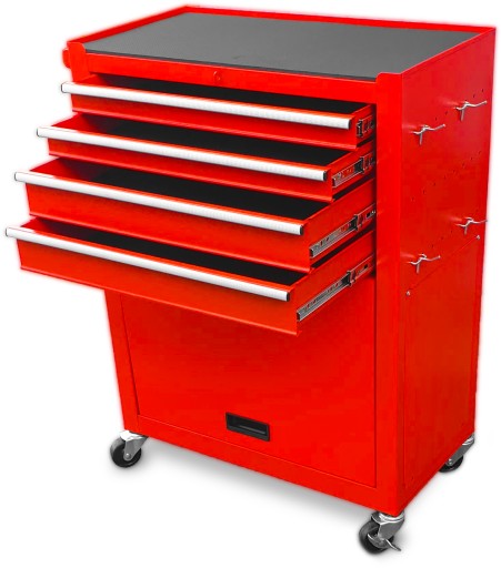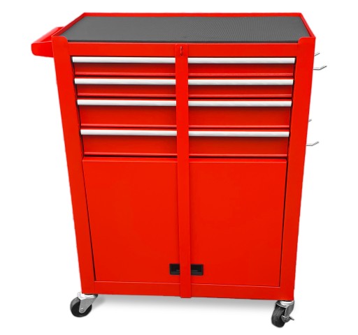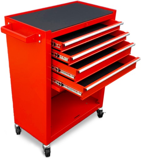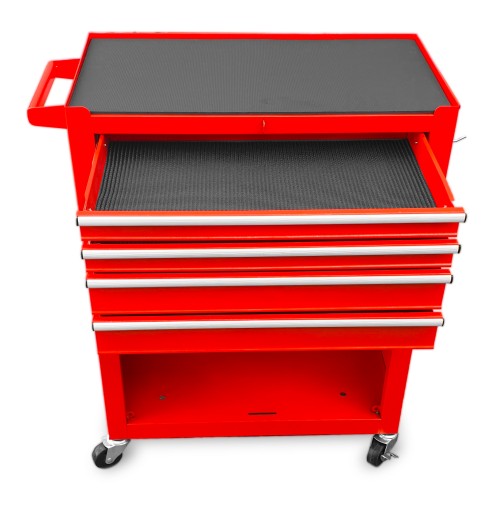 Wysokiej jakości wózek narzędziowy, idealny do warsztatów samochodowych, garaży. Wszystkie szuflady otwierają się bardzo lekko. W każdej szufladzie znajduje się mata antypoślizgowa. Wszystkie szuflady posiadają prowadnice na łożyskach.