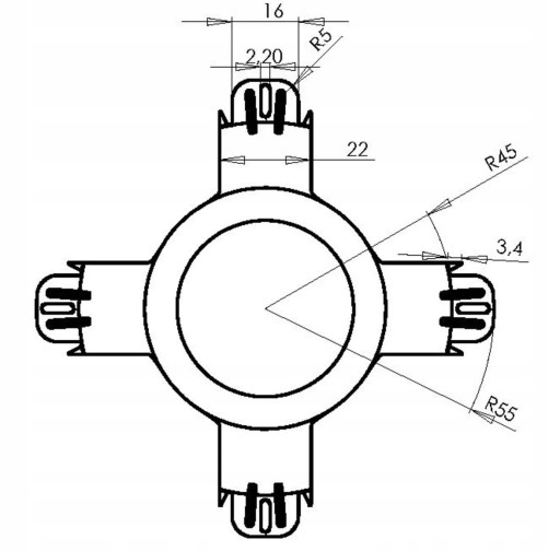 Specjalistyczny kołpak dystansowy D60 przeznaczony jest do stworzenia bezpiecznej odległości między ociepleniem, a źródłem światła w ścianie. Mocowane żarówki LED i halogeny potrzebują odprowadzać ciepło, które powstaje od strony wewnętrznej ściany. Jeżeli zastosowana jest warstwa ocieplenia trzeba ją „odepchnąć” od źródła światła dla bezpieczeństwa przeciwpożarowego, jak również dla wydłużenia trwałości źródła światła. Montaż: · Wywiercić otwór montażowy o średnicy w zakresie 60 ... 85 mm. · Wprowadzić w otwór kołpak i rozeprzeć go tak palcami, aby ząbki w jego ramionach wbiły się w boczne ścianki otworu. · Wprowadzić oprawę oświetleniową i osadzić tradycyjnie za pomocą sprężynujących skrzydeł, między żebrami kołpaka.