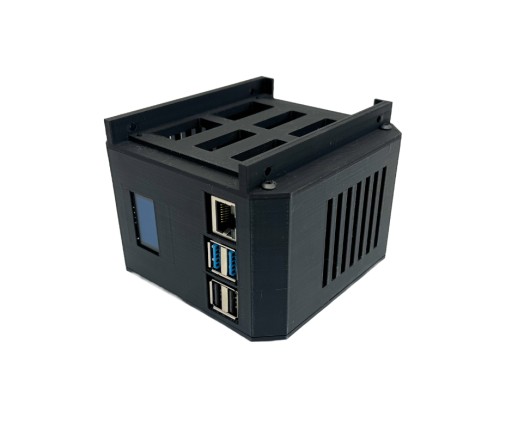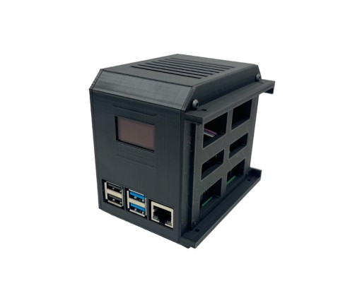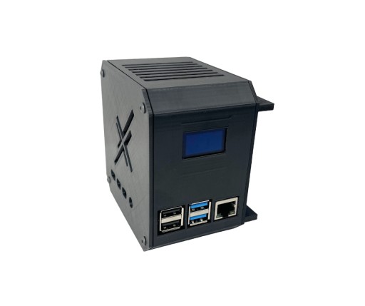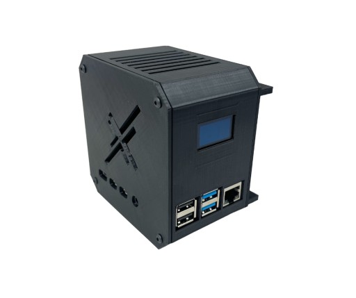 Obudowa typu MiniTower pod komputer Raspberry Pi 4. Posiada otwory na gniazda microHDMI oraz USB-C. Dedykowana pod wyświetlacz OLED 0,96" 128x64. Na górze oraz po bokach posiada otwory które zapewniają przepływ powietrza.