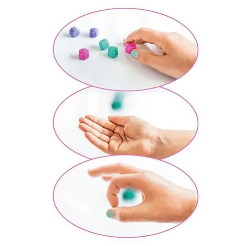 - Zawiera 6 kolorowych kamieni (2 x różowy, 2 x fioletowy, 2 x turkusowy) w puszeczce