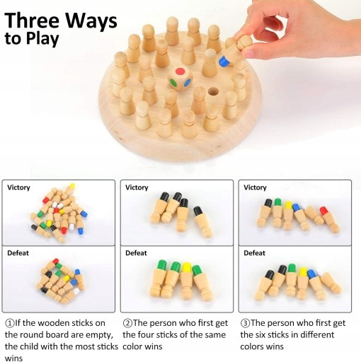 Memory Match Stick Chess Game - Nasz Memory Match Stick jest idealny dla dzieci poniżej 5 roku życia, może nie tylko poprawić koncentrację Twojego dziecka, ale także ćwiczyć jego pamięć. Warto poznać kolory.Wysoka jakość - Nasze zabawki edukacyjne wykonane są z wysokiej jakości klonu, kolory są jasne, części są starannie pomalowane, krawędzie są gładkie, a drewno nie odpryskuje. Nie uszkadza łatwo rąk dzieci, bardzo odpowiedni dla dzieci.Trzy sposoby gry - Nasze drewniane szachy pamięciowe mogą grać 2-6 graczy. Powinieneś losowo położyć drewniane kije z ukrytymi kolorami na okrągłej drewnianej planszy, a następnie zacząć grać z przyjaciółmi i rodziną, obrazek pokazuje trzy sposoby grania w gry. Możesz także ustawić własne zasady, aby w nią grać.