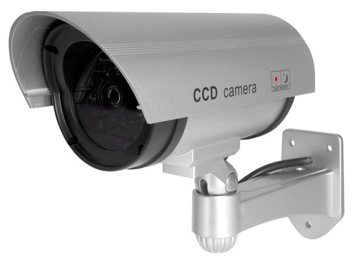 Atrapa kamery to wysokiej jakości imitacja prawdziwej kamery monitoringu CCTV. Migająca czerwona dioda LED sprawia wrażenie monitoringu całodobowego.