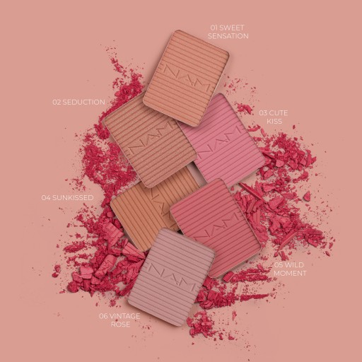 Róż TOUCH OF COLOR BLUSHER dostępny jest w ekologicznym opakowaniu wielokrotnego użytku na wymienne wkłady TOUCH OF COLOR BLUSHER INSERT. Ulubione odcienie różu można zgromadzić w praktycznej kasetce magnetycznej Exchangeable Magnetic Palette i stworzyć swoją własną paletę z ulubionymi produktami NAM.