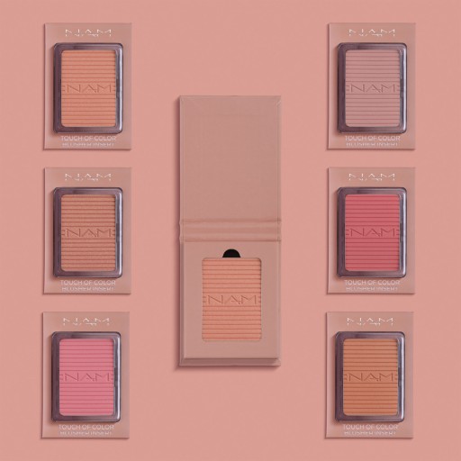 Wegański róż do policzków TOUCH OF COLOR BLUSHER to bajeczna moc przenikania koloru, dodającego świeżości i naturalnego uroku w makijażu twarzy. Wzbogacone naturalnym kompleksem subtelne róże o aksamitnej formule, z przyjemnością i równomiernie rozprowadzają się na wybranych partiach twarzy, dając satynowe wykończenie i perfekcyjnie rozmyty kontur koloru. Róże doskonale współpracują z pozostałą linią kosmetyków kolorowych NAM, w tym z podkładami i pudrami. Dzięki niezwykle drobnemu pigmentowi róże doskonale się blendują, naturalnie i miękko budując intensywność koloru. Dzięki niezwykłym właściwościom blendującym, odcienie można łatwo ze sobą mieszać, kreując zarówno naturalny i świeży look dzienny, jak i mocniej podkreślając kości policzkowe w makijażu wieczorowym. Dodatkowo innowacyjny kompleks BestFILTERneeded w składzie wygładzi drobne nierówności i przykryje niedoskonałości, pozostawiając skórę zdrową i wypoczętą.