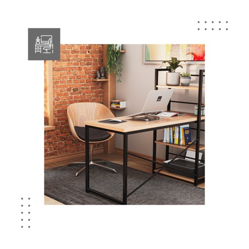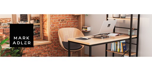 - Blat z wykończeniem o wyglądzie drewna i malowany proszkowo stelaż tworzą interesujący efekt, który doskonale prezentuje się w każdym biurze i pracowni. Biurko z regałem szczególnie dobrze pasuje do wnętrz industrialnych, vintage i loftowych.