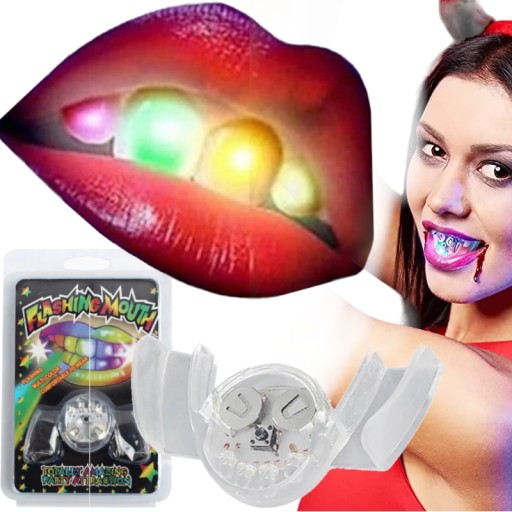 Świecąca nakładka na zęby to świetne uzupełnienie stroju na Halloween, oraz inne przebierane imprezy. Zachwyć wszystkim tym jak świeca Twoje usta.