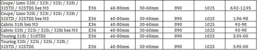 ZAWIESZENIE GWINTOWANE BMW E36 6/92-98 S/C