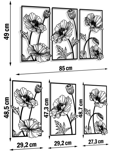 OBRAZ AŻUROWY DEKORACJA ŚCIENNA KWIATY MAKI SALONU PANELE AŻUROWE TRYPTYK