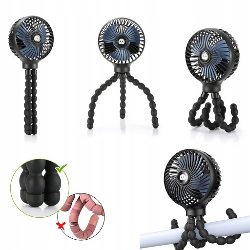 【Zasilany przez USB lub z baterii】: Dwa źródła zasilania: zasilanie przez USB lub zasilany akumulator. Można go używać za pomocą komputera, powerbanku lub samochodowej. Wbudowana bateria 2000 mAh, wentylator wózka może działać przez 8 godzin po naładowaniu.