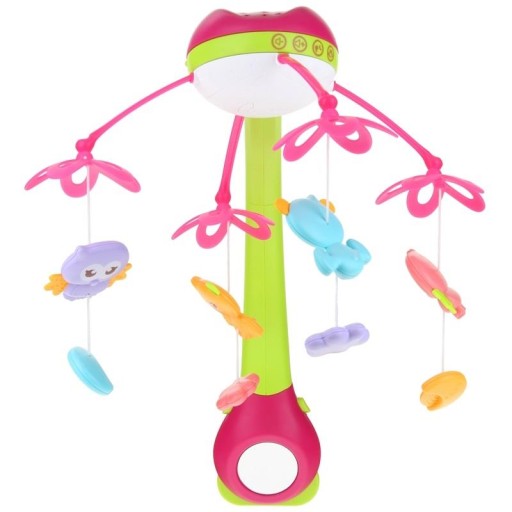 Czas na wirującą zabawę w sensorycznym wydaniu! Kolorowa karuzelka do łóżeczka to idealny pomysł na zabawkę dla najmłodszych dzieci. Obracające się zabawki - zawieszki zachęcają do zabawy w ciągu dnia, a spokojne melodie uspokoją i przygotują do snu. Dzięki wielokolorowym i różnorodnym kształtom maluszek rozwija wyobraźnię oraz zmysł słuchu i wzroku.