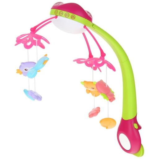 - Możliwość umieszczenia karuzelki na pałąku lub też przymocowanie jej za pomocą klamry do wózka, czy też bocznej ściany łóżeczka