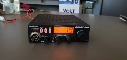 CB radio President Martin może być zasilane z 12 lub 24V - posiada wbudowaną przetwornicę (nie wymaga zewnętrznego reduktora napięcia).