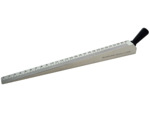 Klin pomiarowy jest przeznaczony do pomiaru szczelin oraz luzów. Wykonany z aluminium, przy zachowaniu wysokiej precyzji jest idealnym przyrządem dla budowlańców i geodetów.