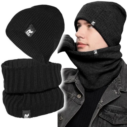 ✅ komplet męski KOMIN + CZAPKA w czarnym kolorze